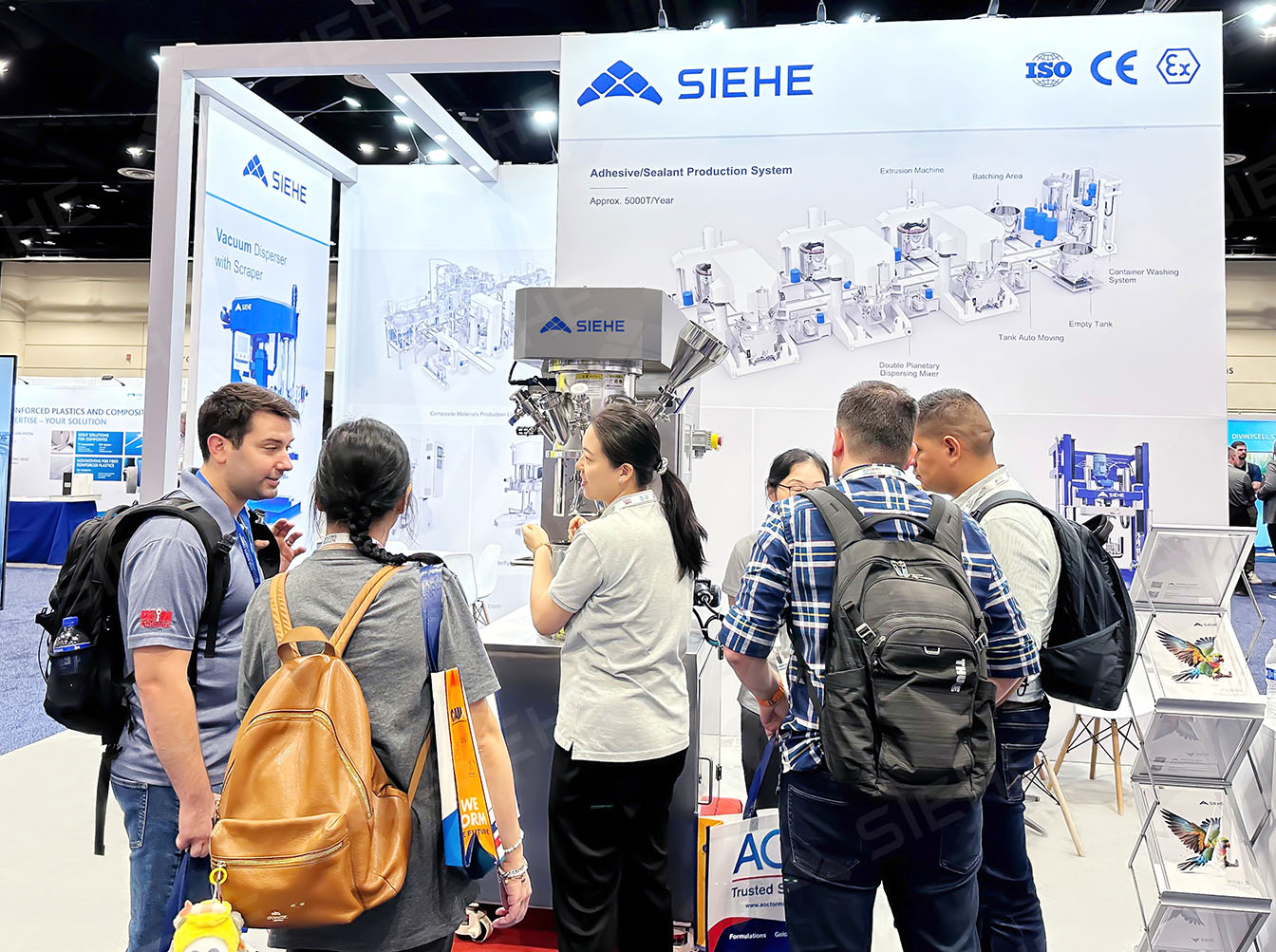 世赫集团在展会上重点展示了复合材料生产线、全自动胶粘剂成套生产线、密封胶成套生产系统、硅胶成套生产线、双行星分散搅拌机及真空刮壁分散机等核心产品,覆盖复合材料生产的全流程,精准响应复材行业在自动化、智能化与高效化方面的迫切需求。其复合材料生产线集成化与自动化水平突出,模块化设计有效提升了生产效率与产品一致性;全自动胶粘剂成套生产线专为高粘度物料研发,实现生产环节全自动化,显著提高生产效能与成品稳定性。此外,世赫的明星产品——双行星分散搅拌机系列设备,桨叶精密铸造、动力强劲,符合欧美标准(CE/ATEX/UL),最高处理粘度可达10,000Pa.s。这一系列创新产品不仅体现了世赫深厚的技术积累与研发实力,也为全球复合材料产业的高端制造与可持续发展注入了新动力。